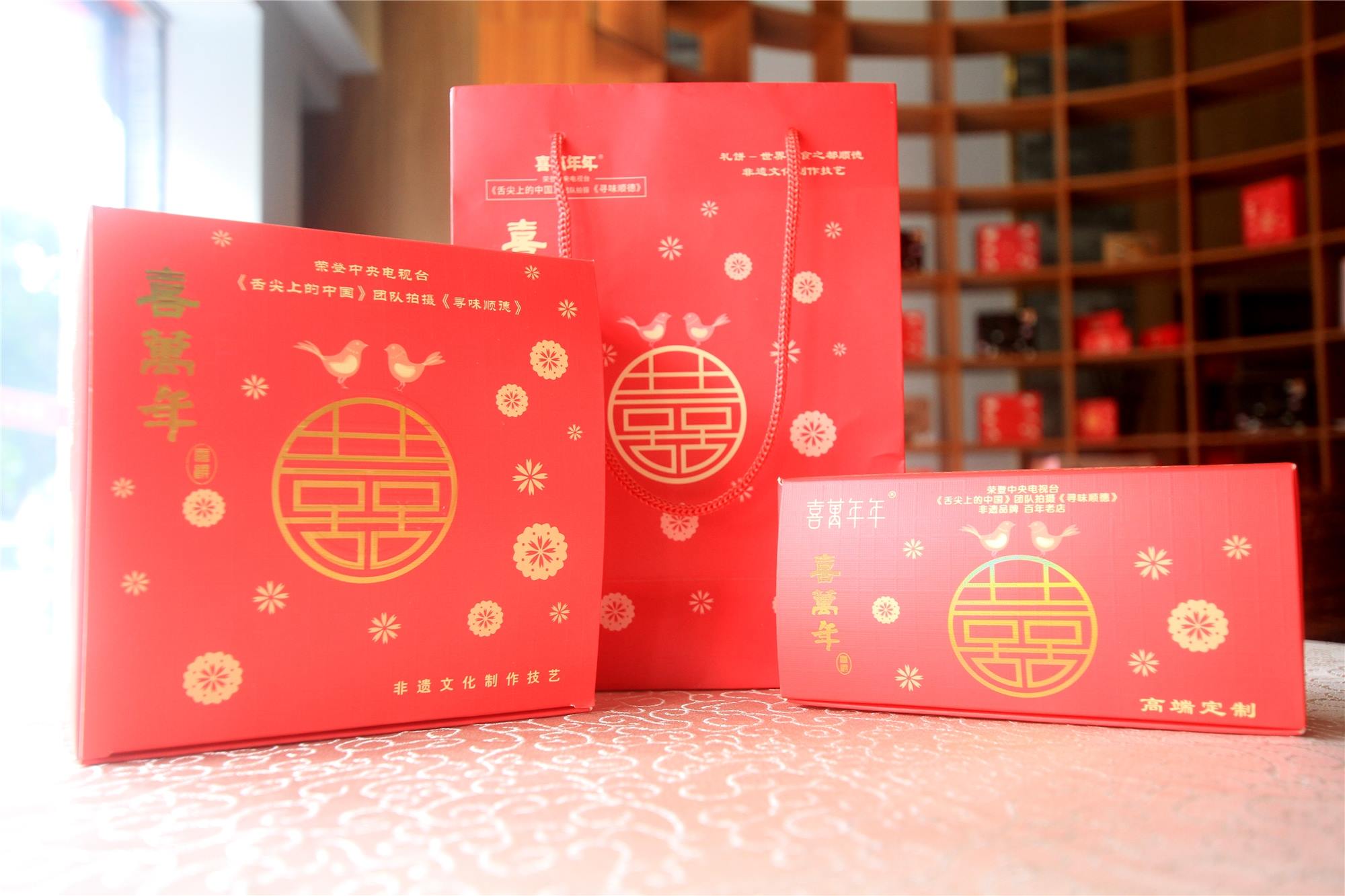 荣登央视《舌尖上的中国》团队拍摄《寻味顺德》的“喜万年”食品是顺德本土具百年历史的非物质文化遗产,旗下品牌产品“喜万年年”嫁喜礼饼、月饼、手信始创于1906年,工艺品质久经岁月考验,现由非物质文化遗产传承人何雪芬及第四代海归严韵键主理,优质选材,传统手工艺制作,品味时尚包装。