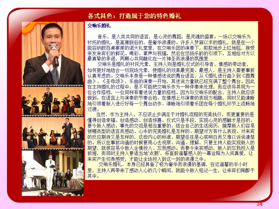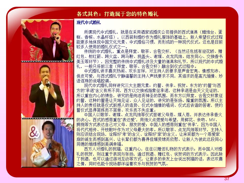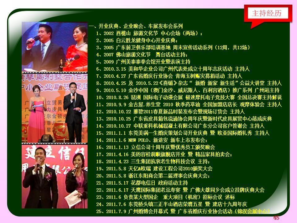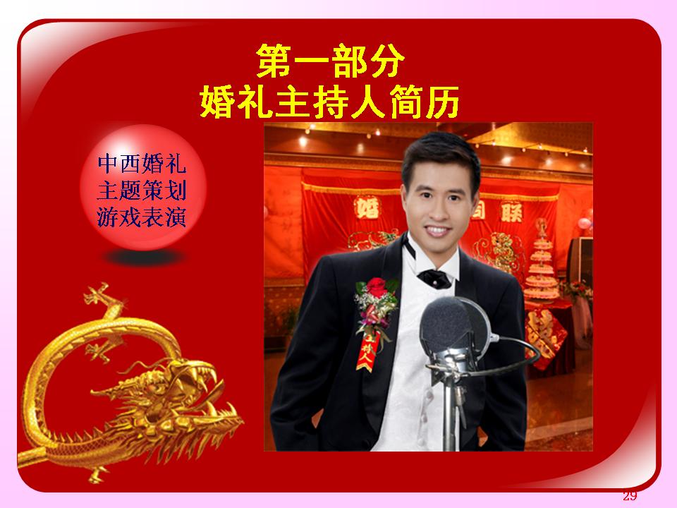 广东省婚庆行业协会主持人导师夏明,十余年广电传媒节目主持导演经验及婚礼主持策划导演经验。与时俱进、用心策划,不断为新人创作定制出各种别具特色的主题婚礼策划,培养组建出民俗婚礼执行团队、西式婚礼执行团队、灯光音响执行团队各十余人。微信及手机号13822266092;作品网站www.13822266092.com(.net也行) 用心策划,以情共鸣,无论婚礼、满月、生日、贺寿,主持夏明团队都能为你缔造独一无二的情感文化氛围。为爱而生,爱无止境。不论豪门盛宴,还是几桌的小聚会,只要有爱存在,我们都乐意付出。价值,在于真诚。 我们相信,任何宴会,都有独一无二的魅力。 我们坚持,专属的策划设计,只为你而存在。