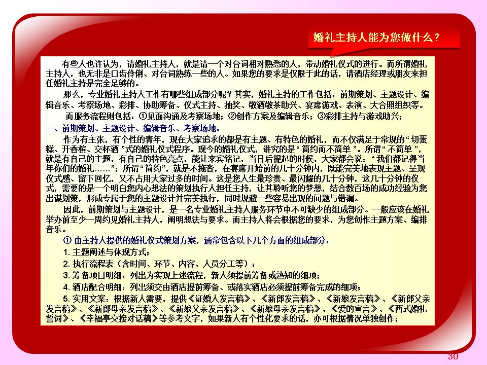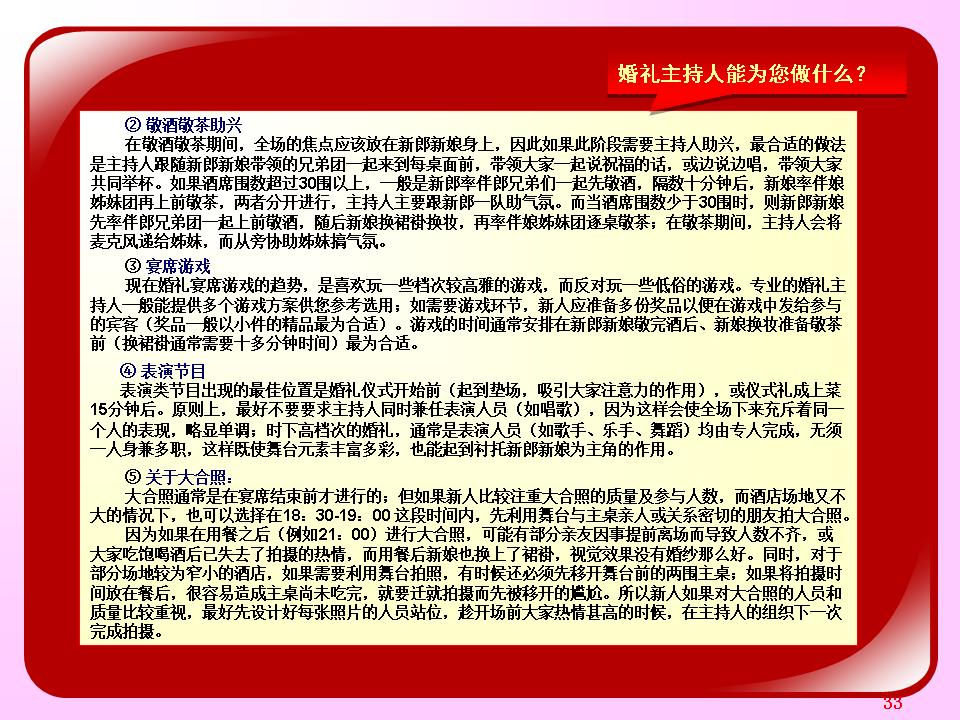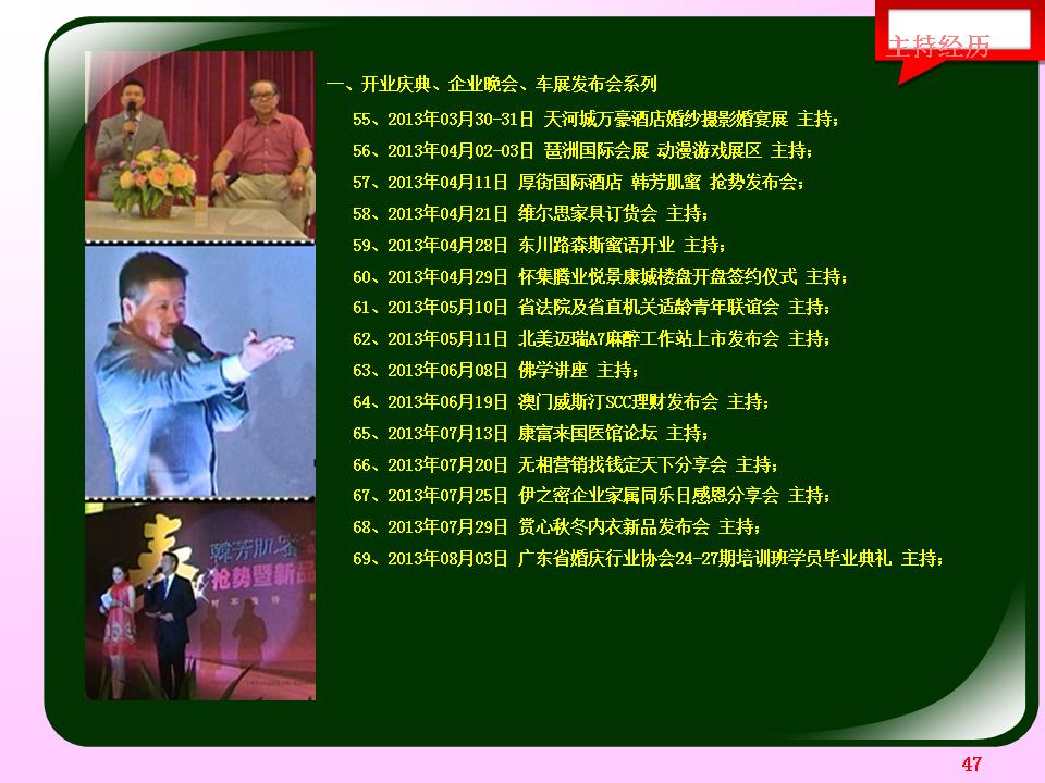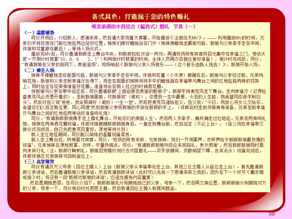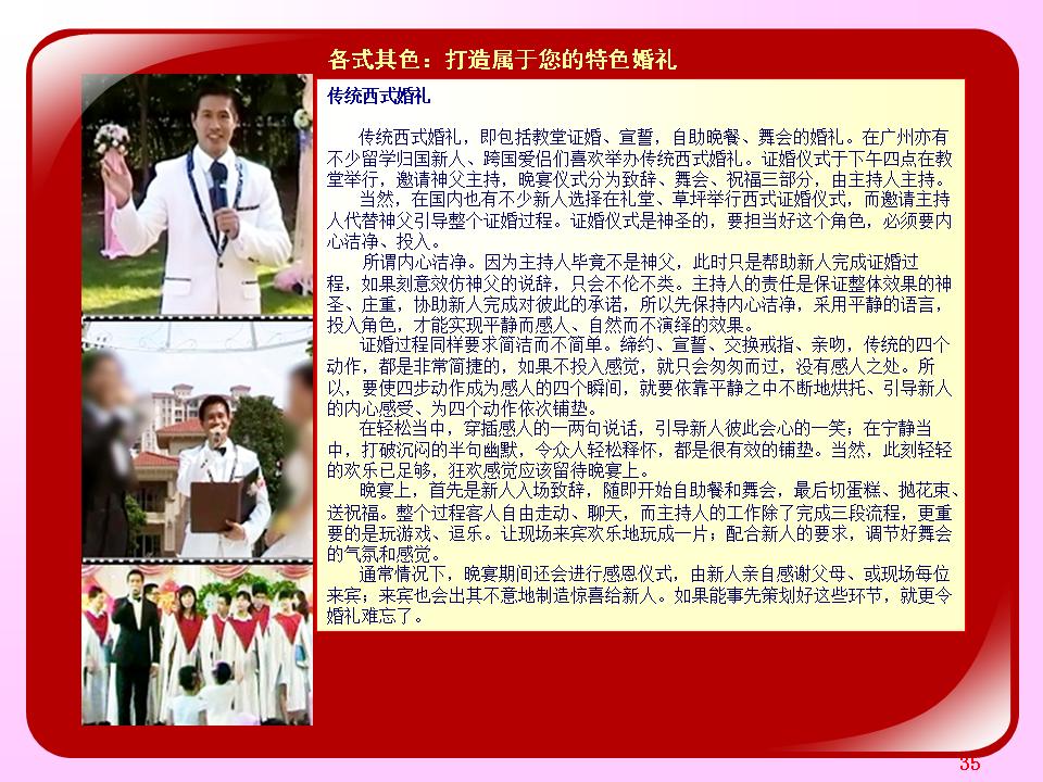 广东省婚庆行业协会主持人导师夏明,十余年广电传媒节目主持导演经验及婚礼主持策划导演经验。与时俱进、用心策划,不断为新人创作定制出各种别具特色的主题婚礼策划,培养组建出民俗婚礼执行团队、西式婚礼执行团队、灯光音响执行团队各十余人。微信及手机号13822266092;作品网站www.13822266092.com(.net也行) 用心策划,以情共鸣,无论婚礼、满月、生日、贺寿,主持夏明团队都能为你缔造独一无二的情感文化氛围。为爱而生,爱无止境。不论豪门盛宴,还是几桌的小聚会,只要有爱存在,我们都乐意付出。价值,在于真诚。 我们相信,任何宴会,都有独一无二的魅力。 我们坚持,专属的策划设计,只为你而存在。